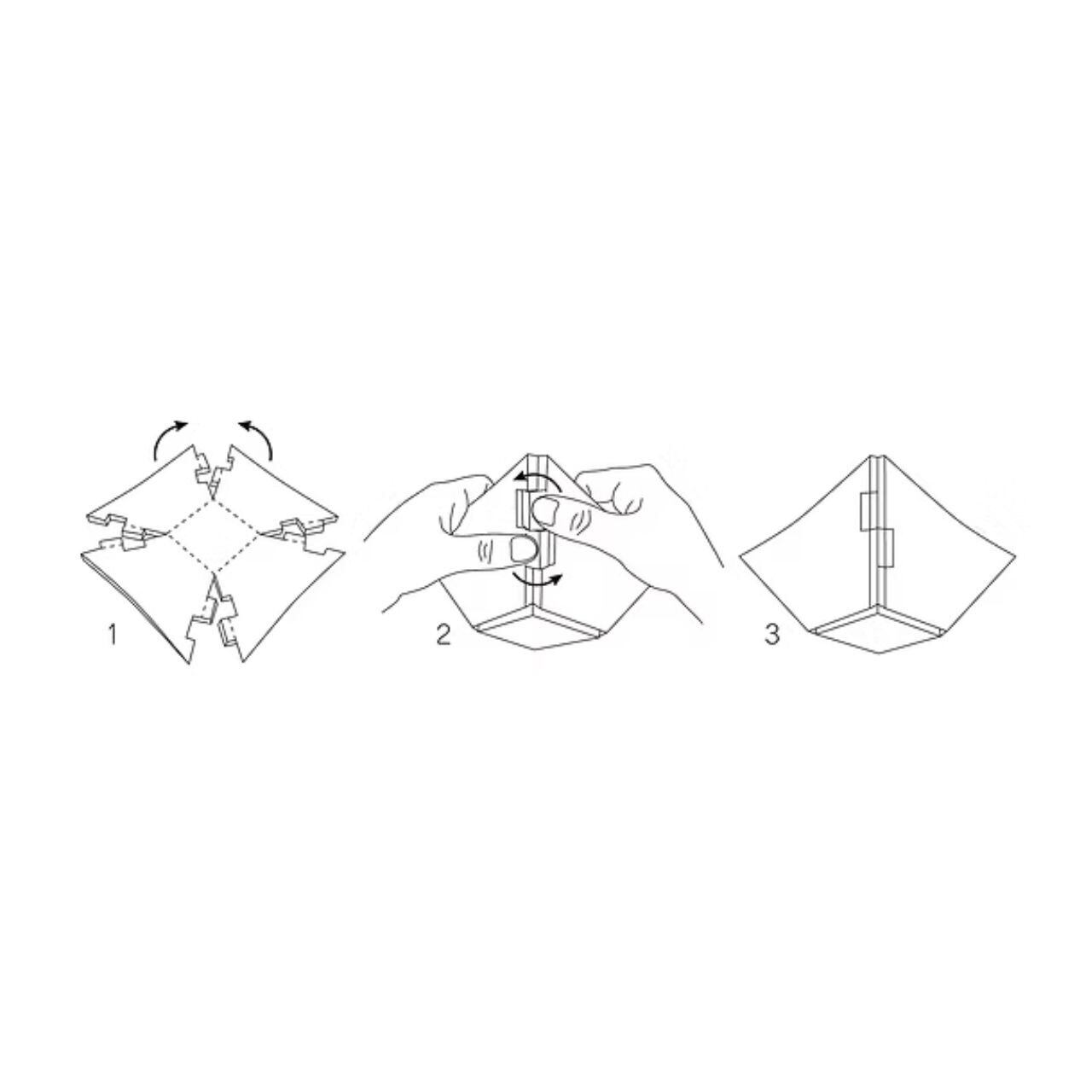 組立は折曲げて簡単におこなえ、フルーツやキャンディー、小物入れに使えるボウル【Sサイズ】です。Mサイズと組み合わせて使えば、ボウルを重ねることも可能です。