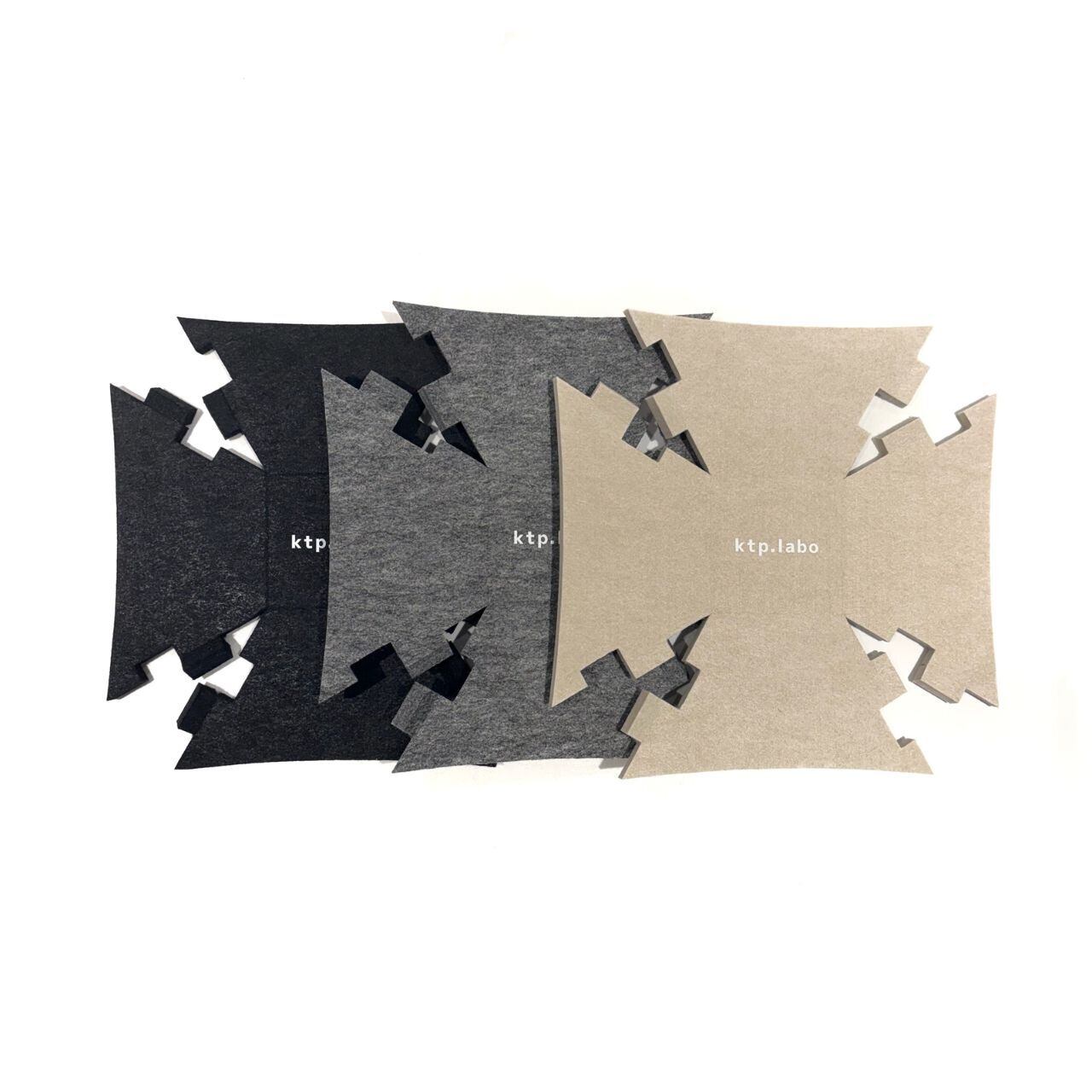 本体に使用しているFEELT BOARD は、フェルトそのままの素材感を保ちつつ、触ると木のように硬いユニークな素材です。 軽量で繊維が絡み合っているため高強度。ぶつかっても安全で、ひきずっても床に傷がつきにくく、吸音効果もあります。